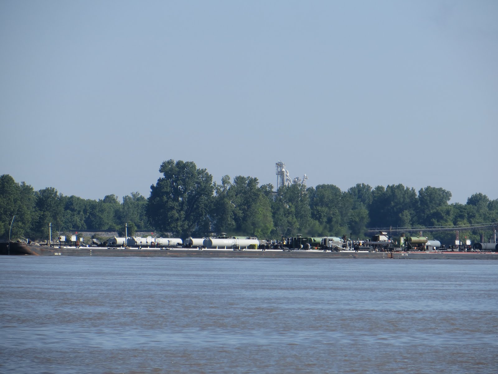 I also want to show you the barge we met moving down the river. Not an especially large load as these go, but interesting anyway.